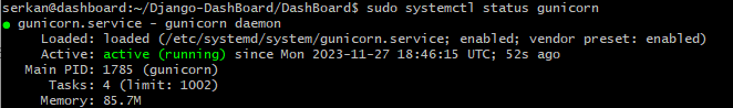 ExecStart=/home/serkan/Django-DashBoard/venv/bin/gunicorn --access-logfile - --workers 3 --bind unix:/home/serkan/Django-DashBoard/DashBoard.sock DashBoard.wsgi:application